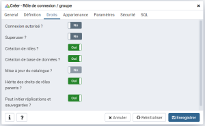 Rappel : Un rôle de connexion ne se distingue d'un rôle de groupe que par l'activation de la possibilité 'connexion autorisé' (LOGIN en SQL)