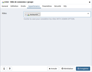 Rappel : Un rôle de connexion ne se distingue d'un rôle de groupe que par l'activation de la possibilité 'connexion autorisé' (LOGIN en SQL)